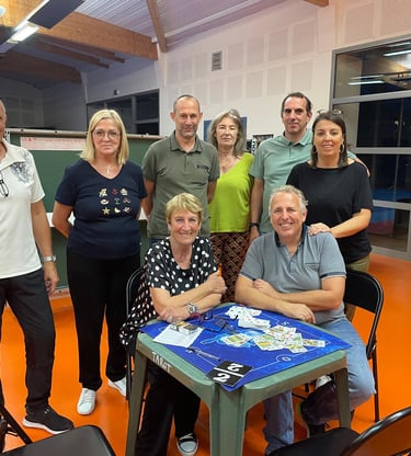 Nous proposons des cours, animés par Laurent et Joana, tous les Vendredi de 18h30 à 19h30. Ils sont suivis d'un tournoi: libre, duplicate, équipe...nous alternerons chaque semaine pour proposer un choix varié de compétitions et de soirées détentes. Un bar permet de partager ses meilleurs 'Baies des cochons' entre deux tables, et une restauration sera proposée.