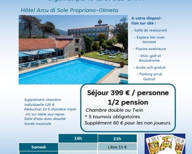 Chaque année début Juillet se déroule le festival de Propriano. Dans un cadre idyllique, une centaine de joueurs mêlent leur passion du tarot et farniente ou découverte du Sud de l'ile de beauté.